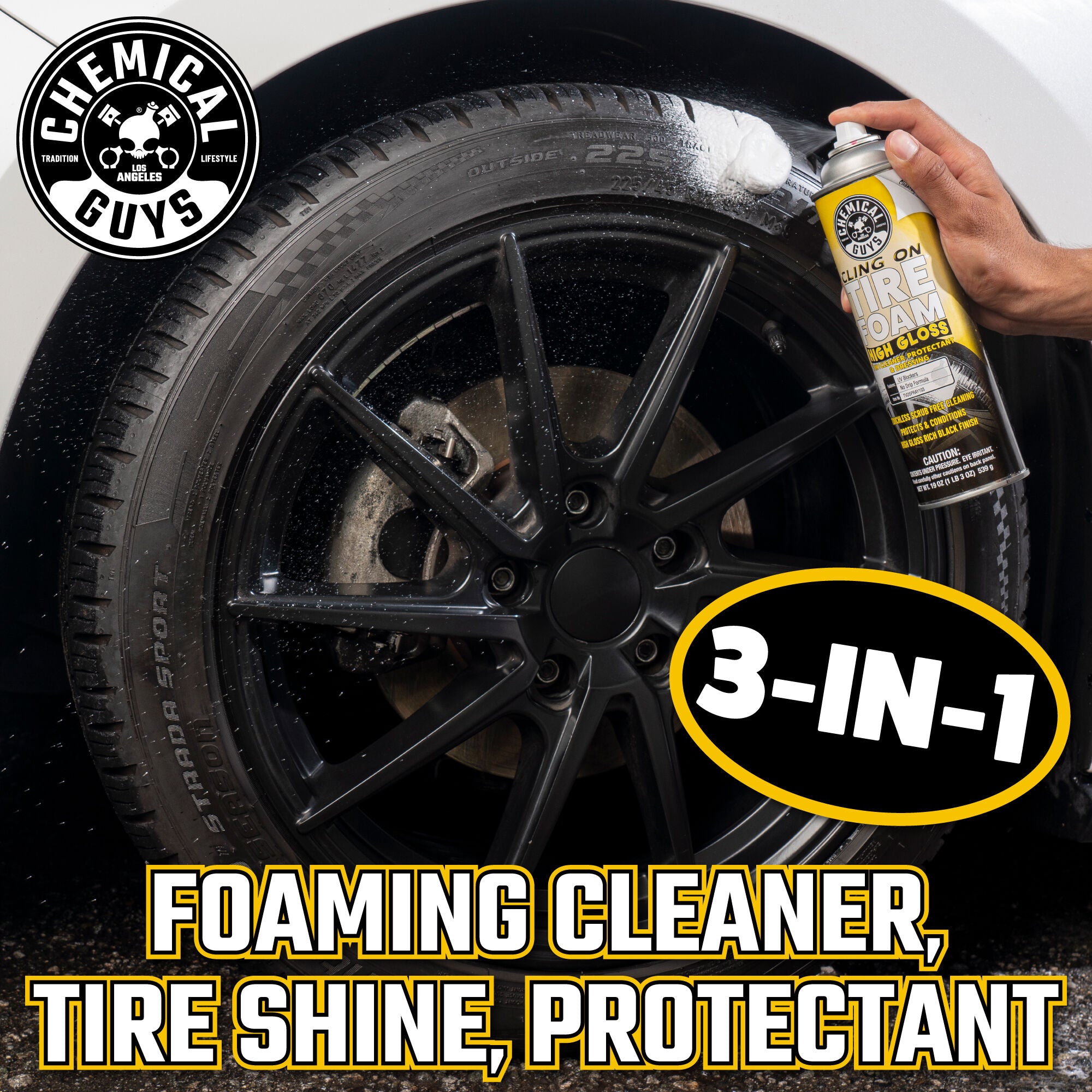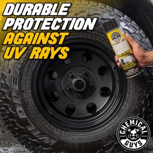 Keep your tires looking their best with this all-in-one cleaner. protectant. and shine spray. It clings to your tires. giving them a deep clean and a brilliant. long-lasting shine. Plus. it provides UV protection to prevent fading and cracking. It’s super easy to use. making it perfect for anyone who wants their tires to look great with minimal effort.